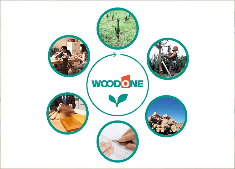 We want to face people and society through wood and work together to create an ideal future. That is our wish at Wood One. With the motto “planting, cultivating, and utilizing trees”, we perform every step involved in the production of lumber within our own group companies. Through the 30year logging cycle, we contribute to the conservation of the global environment with a system of semipermanent supply that does not deplete lumber resources. Our motto is “providing products and services that satisfy and impress our customers from their perspective,” so let’s work together to become a Japanese company that enriches the world!